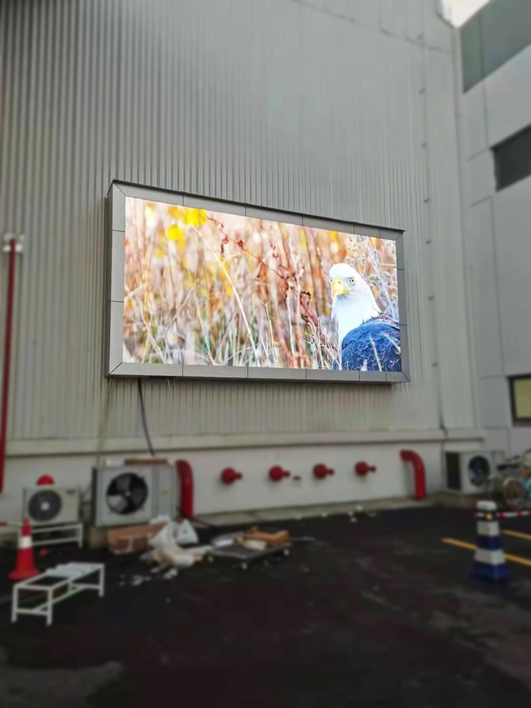 户外大屏案例——靠墙,双立柱