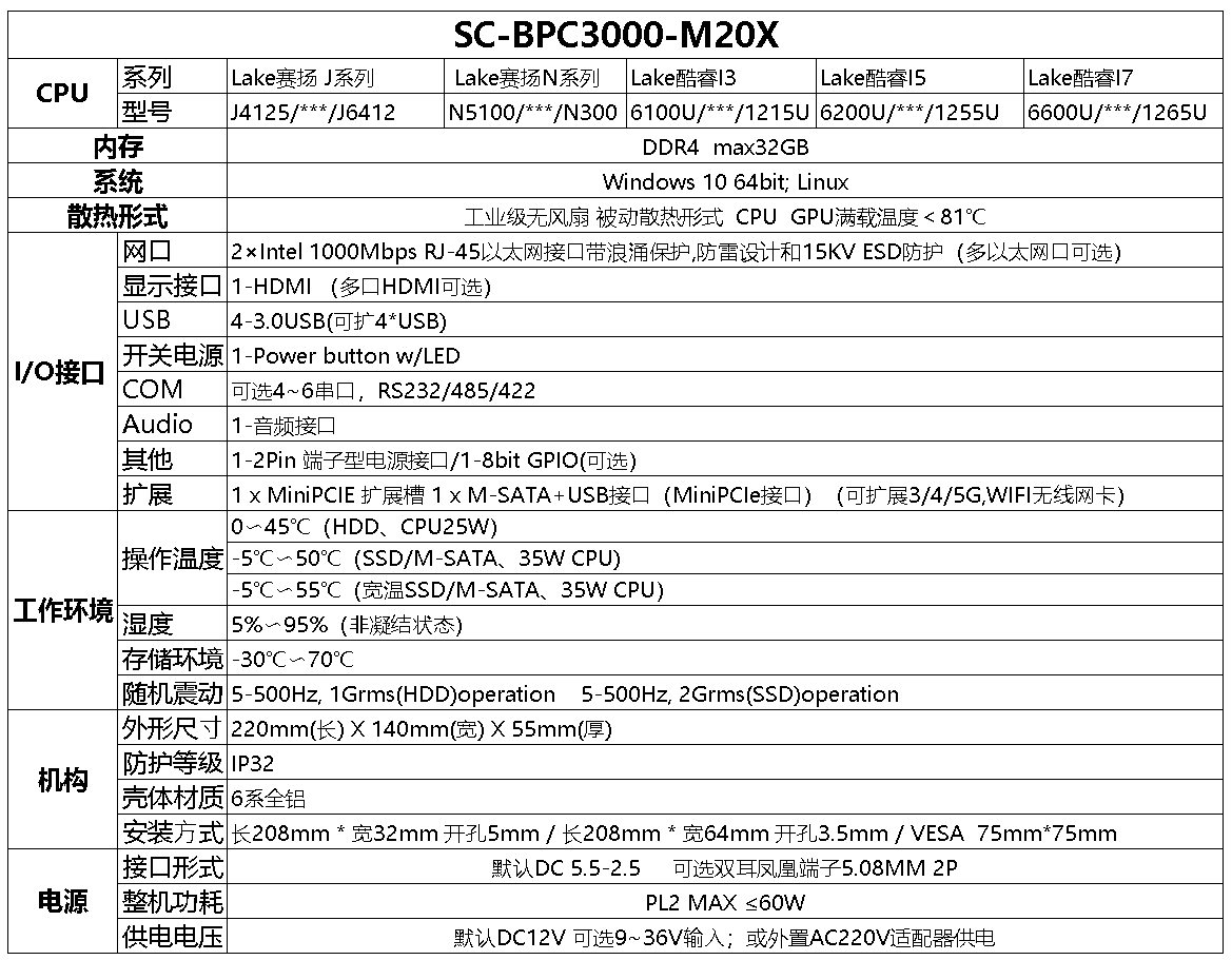 小型工控机 BPC3000-M20X